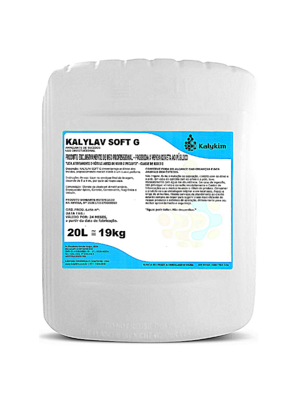 KALYLAV SOFT G é um produto viscoso, que desembaraça e amacia as fibras dos tecidos.