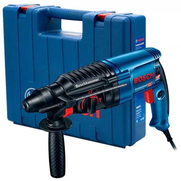 O Martelete Perfurador Rompedor Bosch GBH 2-26 DRE é o mais rápido para perfurações em concreto e cinzelamentos na construção. Possui potente motor de 800W e interruptor eletrônico, ideal para instalações em geral, sistema de encaixe SDS-plus para trocas rápidas de acessórios, oferece mesma potência em ambos sentidos de giro e embreagem de segurança, oferecendo proteção ao operador em caso de travamento do acessório.